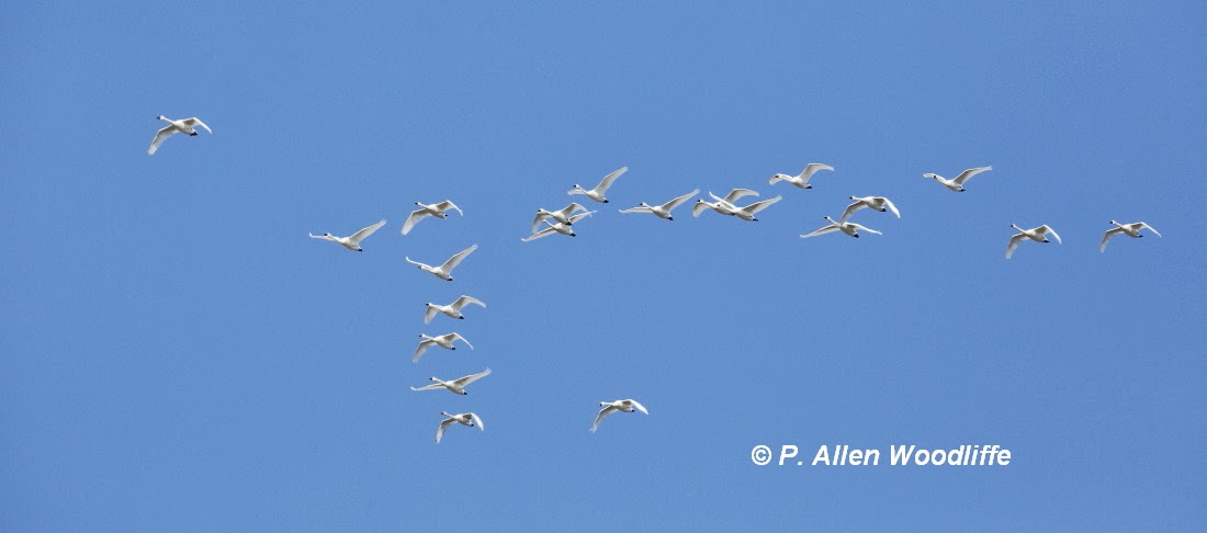 And now on to the 'white stuff'.....instead of surrounding fields being blackened by crows, they are being whitened by the arrival of those magnificent Tundra Swans, which to many people, herald the arrival of spring! While in some milder winters a few dozen or more swans may overwinter in places like Rondeau Bay, this year there was a total absence of them......they must have realized that they would have much better wintering conditions in their traditional area of Chesapeake Bay along the east coast surrounded by Virginia and Maryland.