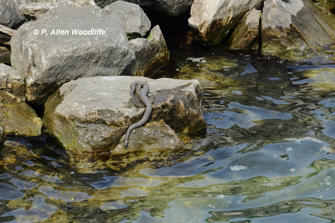 The other one of the big three is the Lake Erie Water Snake (LEWS). It isn't a true species in itself, as it is a subspecies/colour morph of the much more common Northern Water Snake. But the LEWS is different because it seldom is as dark brown and usually has less distinct cross banding. This is highly advantageous for them as they spend a lot of their time on the dark gray limestone shorelines of the Erie Island, and blend in better. When they are at the more vulnerable youngster stage, this is definitely an advantage so they don't get picked off by hungry gulls or herons. They are restricted to some of the Erie Islands and the Catawba/Marblehead Peninsula of Ohio.