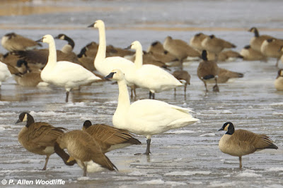 ...and a few Northern Cardinals here and there.Yesterday I purposely stopped by the Blenheim Sewage Lagoons, hoping to see a Ross's Goose that appears either there or in the Erieau area on occasion. There were no geese in the lagoons themselves, but a couple of Mute Swans gave a good photo opportunity. I had to photograph something to show for my time there.....:-)