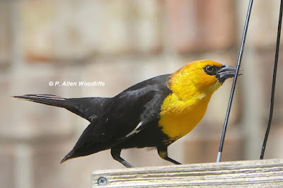 Certainly one of the highlights in recent days, at least for me, was to be able to photograph a couple of Yellow-headed Blackbirds. This predominantly western species has taken a liking to the east side of Lake St. Clair, and some friends of mine have a feeder within their breeding territory that attracts them. It is a private residence, but I have permission to visit on occasion, and sometimes the birds cooperate for the camera.